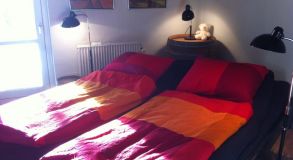 We rent another doubbleroom also with its own entrence but with a private toilet and bathroom. From this room there is a view to the garden with a fishpond. In the garden there is a large terrasse facing south.