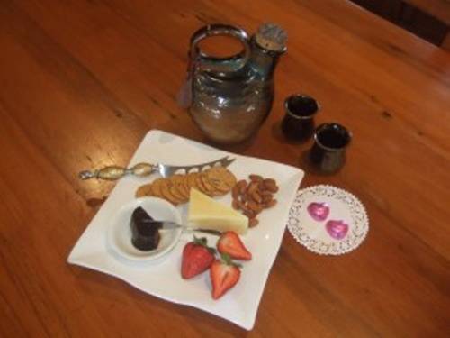 Breakfast is served on the rear deck and may include croissants, pancakes, fresh fruit, free range eggs, mushrooms, bacon, tomato, baked beans and sausages. Afternoon Tea is offered on arrival and a glass of Port and chocolates is the perfect way to end the day.